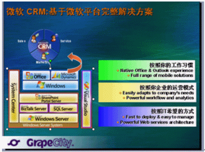 GrapeCity作為國(guó)內(nèi)第一個(gè)引入MSCRM的獨(dú)立解決方案供應(yīng)商,積累了相當(dāng)豐富的實(shí)施經(jīng)驗(yàn),在這一領(lǐng)域擁有多項(xiàng)"第一"。同樣,GrapeCity已為多家客戶實(shí)施MSCRM3.0獲得成功的利好消息,也為Microsoft DynamicsTM CRM(MSCRM)3.0中文簡(jiǎn)體版的正式發(fā)布錦上添花。
