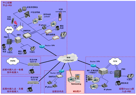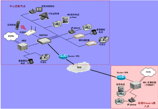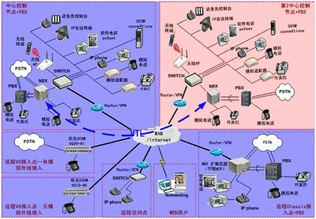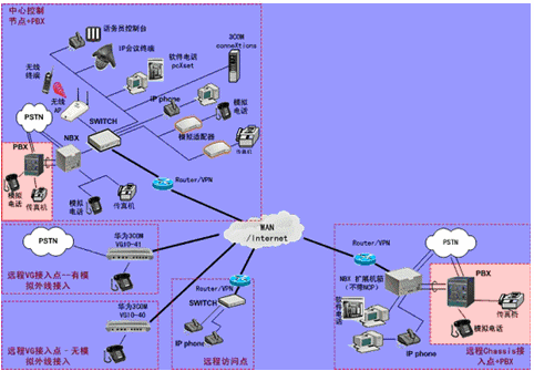 IPPBX將成為企業(yè)辦公不可缺少的一部分。此方案適合于已經(jīng)有PBX的公司,由于先期已經(jīng)投入了PBX設(shè)備,費用昂貴,所以不會輕易被替換。在外地有多家分公司,使用傳統(tǒng)電話通訊費用很高,希望能降低成本。并希望在分公司所在城市可以通過當?shù)氐腜STN落地,節(jié)省長途費用。依照客戶的需求,我們制定了以下方案: