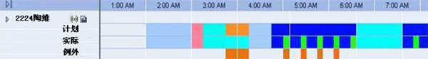 如圖,通過與PBX、CTI系統(tǒng)的接口,排班系統(tǒng)獲取座席的實(shí)時(shí)狀態(tài)信息,如登錄、接聽、話后處理、登出等,并以不同的顏色進(jìn)行表示,與計(jì)劃的班次安排進(jìn)行比對(duì),從而監(jiān)控到座席的遵時(shí)例外(非遵時(shí))。通過這種方式,座席的實(shí)時(shí)狀態(tài)變化能夠及時(shí)的得到監(jiān)控,便于管理人員精確的監(jiān)控遵時(shí),同時(shí),也把班長從遵時(shí)管理中部分解脫出來。