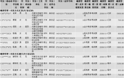 點(diǎn)擊單個學(xué)員查看頁面的相關(guān)列表,直接添加其他考務(wù)信息。張小玲是報名人力資源三級和文秘三級的學(xué)員,人力三級學(xué)習(xí)需要代辦考試。繳納人力培訓(xùn)費(fèi)3000元,文秘培訓(xùn)2000元,報名人力資源管理師考試費(fèi)500元。