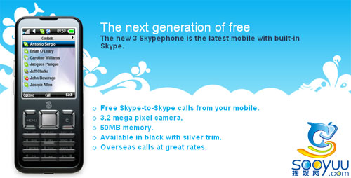英國和黃3取消限制 買SIM卡即可任意撥打Skype 2009-04-27