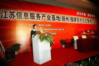 “腰纏十萬貫,騎鶴下?lián)P州”——在“煙花三月”最美的季節(jié),在“長江三角洲經(jīng)濟帶”最具活力的地區(qū),在榮獲“聯(lián)合國人居獎”的揚州,4月21、22日“江蘇信息服務(wù)產(chǎn)業(yè)基地(揚州)揭牌簽約推介暨揚州呼叫產(chǎn)業(yè)基地建設(shè)運營管理論壇”隆重舉行,揚州市市長、江蘇省信息產(chǎn)業(yè)廳廳長、揚州人大等四套班子以及來自北京、上海及江蘇省內(nèi)的各信息產(chǎn)業(yè)的相關(guān)企業(yè)高管及業(yè)內(nèi)知名專家,帶著投資,帶著知識,帶著對信息揚州規(guī)劃的建議,齊聚揚州,共商大計。