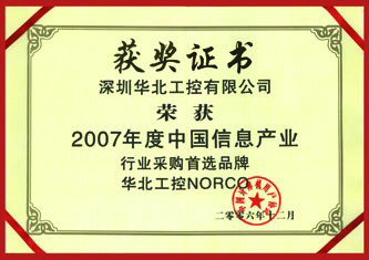 2007年1月16日,由中國計算機用戶協(xié)會(簡稱CCUA)主辦的“中國計算機用戶協(xié)會2006年度企業(yè)及產品推介頒獎大會” 在北京世紀金源大飯店隆重召開,通過對中國境內從事IT產品生產、銷售、集成和服務企業(yè)的經營規(guī)模、服務能力、產品使用效果、企業(yè)誠信和持續(xù)發(fā)展能力等多項指標進行綜合評定,揭曉了中國信息產業(yè)2006年度優(yōu)秀企業(yè)評選與產品推介活動結果。華北工控憑借其在業(yè)內深入人心的影響,再次獲得“2006年度中國信息產業(yè)誠信企業(yè)獎”和“2007年度中國信息產業(yè)行業(yè)采購首選品牌”。