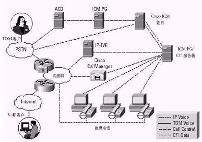 通過一個容納了ACD、IVR、Web和電子郵件服務器、桌面應用以及其他內(nèi)容的計劃,Cisco ICM軟件使公司能夠利用Internet或PSTN實現(xiàn)與客戶的交互。