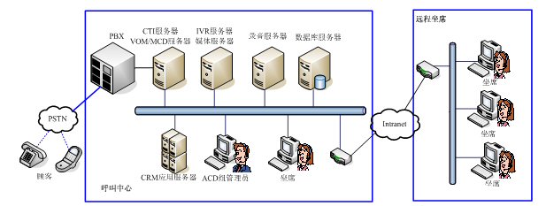 VOM MCD系統(tǒng)是架構(gòu)在傳統(tǒng)PBX之上的一個中間件應(yīng)用系統(tǒng),必須和PBX,CTI服務(wù)器、媒體服務(wù)器、CRM等系統(tǒng)協(xié)同應(yīng)用,才能發(fā)揮最大效用。