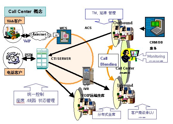 CallCenter系列CTI中間件產(chǎn)品包括:ACD智能路由分配;IVR多媒體語音交互應(yīng)答;IVRBuilder業(yè)務(wù)生成解釋子系統(tǒng);CallManager統(tǒng)一控制臺;CMS系統(tǒng)實時監(jiān)控;管理者統(tǒng)計報表系統(tǒng);ACS計劃呼叫管理;RecordManager全程錄音管理;SoftPhone座席應(yīng)用工具;VOIP遠端座席;WEB呼叫服務(wù);CRM集成開發(fā)平臺。