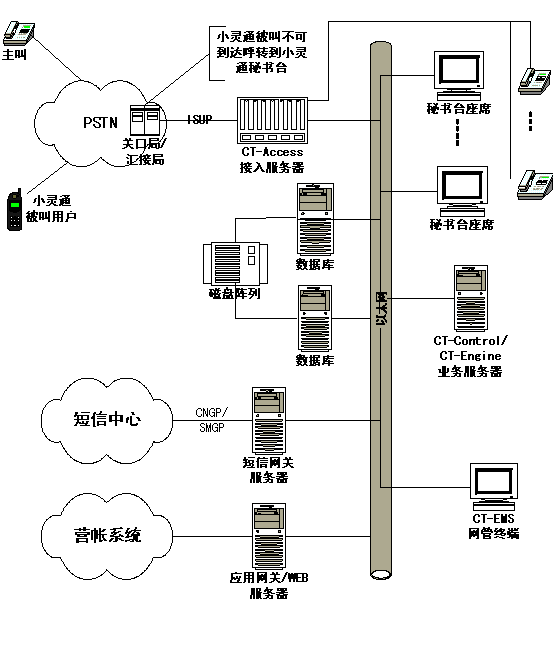 小靈通秘書臺業(yè)務(wù)系統(tǒng)結(jié)構(gòu)見下圖: