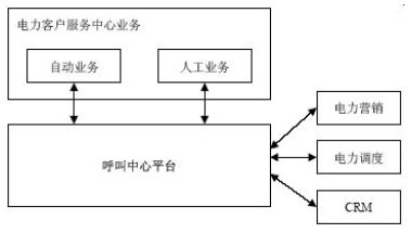電力客戶服務中心整體結構根據(jù)呼叫中心方案設計,采用呼叫中心平臺系統(tǒng)為客服平臺,在平臺上開發(fā)電力自動業(yè)務和人工業(yè)務系統(tǒng);并且利用呼叫中心系統(tǒng)平臺的互連互通能力跟其他電力相關軟件系統(tǒng)對接,如后臺電力營銷子系統(tǒng),電力管理系統(tǒng),電力調度,電力網管,客戶關系管理子系統(tǒng)等等。