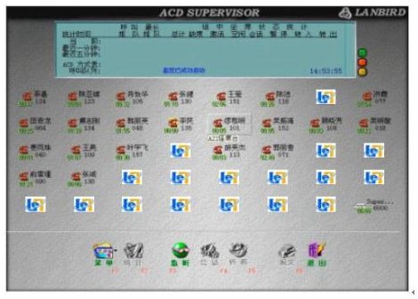 可監(jiān)視IVR的狀態(tài), 包括:       可監(jiān)視數(shù)據(jù)庫代理服務器的處理狀態(tài), 包括:       可監(jiān)視客戶服務平臺的全部坐席的工作狀態(tài), 包括簽入, 簽出, 空閑,示忙, 正在通話, 等待應答, 等待來話, 用戶掛機, 等待被叫振鈴, 三方通話,座席通道壞或座席死機, 座席通道已經(jīng)恢復, 人工轉自動, 坐席掛起等。