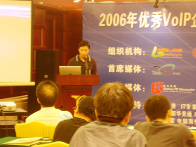 . com評選為世界網(wǎng)絡(luò)電話百強之一,同年我們又一款產(chǎn)品獲得美國網(wǎng)絡(luò)電話大會“最佳展品獎”和“年度產(chǎn)品獎”。從04多現(xiàn)在,這款產(chǎn)品一直是風(fēng)靡世界。05年我們又進一步發(fā)展的,也是獲得美國網(wǎng)絡(luò)電話權(quán)威組織評選世界網(wǎng)絡(luò)電話一百強。06年,我們有一款視頻產(chǎn)品,他也獲得“最佳展品獎”和“創(chuàng)新獎”,兩項大獎。看完以后,大家應(yīng)該有一個大概了印象了。