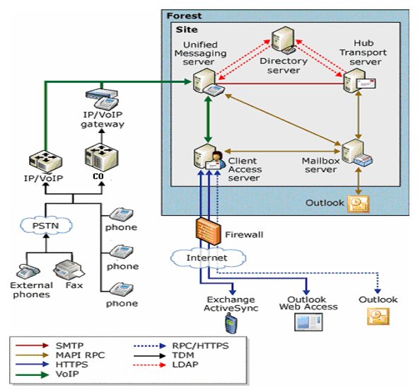客戶端可以通過Outlook,Web,固話語音和手機接入,查看相關(guān)的郵件以及日程安排等信息。如下圖: