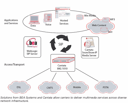 BEA提供領先的SOA基礎架構,同時它還提供可以在即使是完全不同的IT環(huán)境中建立應用和管理SOA的強大的、 基于標準的平臺。BEA WebLogic Communications Platform (WebLogic 通信平臺)是第一個提供在運營商級環(huán)境中、全業(yè)務功能的融合IT和電信的平臺。它使得運營商可以通過加強利用固網(wǎng)和無線網(wǎng)開展多樣的數(shù)字內(nèi)容和視頻服務的能力,從而增加收入。其WebLogic SIP 服務器提供了必需的呼叫建立和會話管理,但是,運營商仍然需要高級的媒體處理能力,以及能夠與BEA 解決方案進行互操作的標準接口,從而使得運營商可以提供可擴展的語音、視頻和多媒體服務。他們同時需要有媒體網(wǎng)關以實現(xiàn)跨網(wǎng)絡的連接。Cantata與BEA Systems 合作,提供與BEA的WebLogic SIP服務器可靠的交互操作性,同時,運營商可以利用Cantata的SnowShore IP媒體服務器以及集成媒體網(wǎng)關1010實現(xiàn)跨固網(wǎng)和無線網(wǎng)語音和多媒體服務。