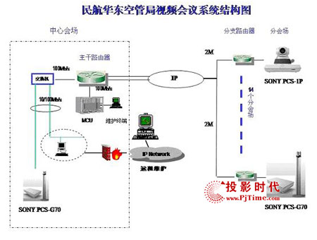 為了建成“具有華東特色,符合總局要求”的視頻會(huì)議系統(tǒng),空管局領(lǐng)導(dǎo)經(jīng)過(guò)嚴(yán)格的考察和甄選后,最后采用了Sony的視頻會(huì)議系統(tǒng)解決方案,包括5臺(tái)PCS-G70和10臺(tái)PCS-1P。整個(gè)項(xiàng)目運(yùn)行在民航數(shù)據(jù)網(wǎng)(ATM網(wǎng))的環(huán)境下,共有24個(gè)節(jié)點(diǎn),設(shè)備分布呈星型結(jié)構(gòu)。