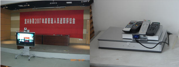在宜興公司大樓三樓的會(huì)議室內(nèi),配置一套SONY PCS-G50視頻會(huì)議終端;并配置數(shù)據(jù)雙流模塊。