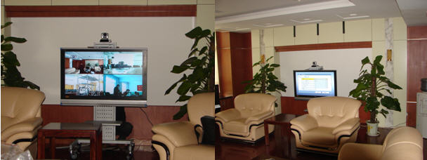 在宜興公司大樓二樓的貴賓室內(nèi),配置一套SONY PCS-1P視頻會(huì)議終端;并在此終端內(nèi)安裝了支持6點(diǎn)多點(diǎn)會(huì)議的H.323內(nèi)置多點(diǎn)MCU。