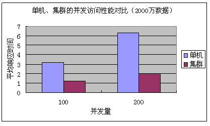 海量數(shù)據(jù)高并發(fā)環(huán)境下單機(jī)、集群訪問(wèn)性能對(duì)比圖示: