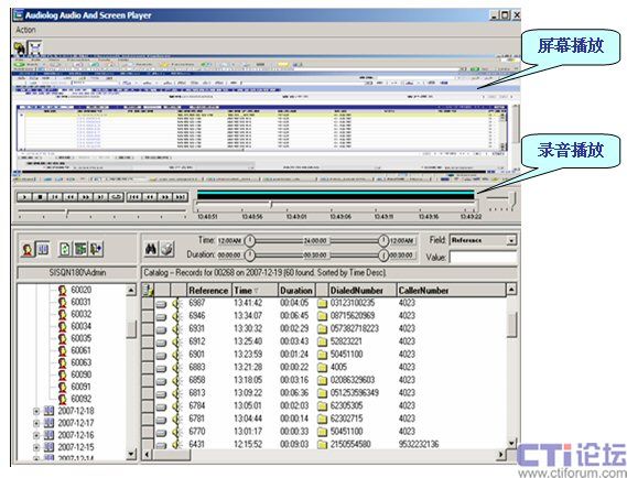 在對(duì)座席電話進(jìn)行語(yǔ)音錄音的同時(shí),Audiolog Screen Capture可對(duì)座席的電腦屏幕的變化及座席進(jìn)行業(yè)務(wù)的操作進(jìn)行同步記錄,可在回聽(tīng)播放電話錄音的同時(shí),對(duì)座席在電腦屏幕上整個(gè)業(yè)務(wù)流程進(jìn)行重播。