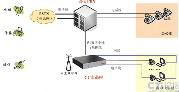 CC水晶呼與辦公PBX融合組網示意圖