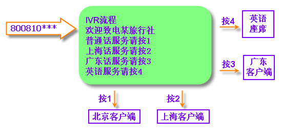 當(dāng)客戶撥打電話進(jìn)入MVB2000系統(tǒng)平臺的呼叫中心。通過IVR導(dǎo)航,可隨意打到各地的客戶端,再通過客戶端進(jìn)行更加細(xì)致的分類。并且,每個客戶端都可以互相轉(zhuǎn)接。IVR流程可以無限下拉菜單。