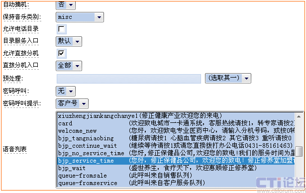 - 自動語音應(yīng)答(IVR):實現(xiàn)全天候自助式服務(wù)。通過系統(tǒng)的交互式應(yīng)答服務(wù),來電者可以很容易的通過電話機鍵盤輸入他們的選擇,從而得到24小時的服務(wù)。用戶根據(jù)自己的業(yè)務(wù)需求自主錄制多層次IVR語音自動應(yīng)答流程,并在更換之后能夠和后臺的程序相結(jié)合(如增加一個流程、刪除一個流程、跳過某個流程等)。根據(jù)需要,也可以將來電者轉(zhuǎn)移到不同的服務(wù)組甚至不同的單位或者部門。