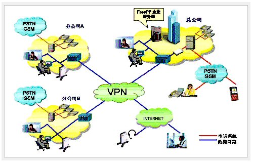 FreePP獨有的群組功能可以幫助企業(yè)將其總部與分支機構原本各自獨立的若干個PBX整合成為一個PBX,實現(xiàn)Internet、PSTN網(wǎng)絡上通信應用的融合,幫忙企業(yè)擺脫對傳統(tǒng)通信運營商的依賴,完全掌握自己的通信網(wǎng)絡。通過為PBX外線上的若干個FreePP Box (或MPES)分配一個Group Number,PBX內(nèi)線上的分機按照PBX上的設定來獲取Group Number中的一個FreePP Box,進而通過這個FreePP Box來呼叫另外一組Group Number 連接的PBX分機號碼。他們相互間的通信完全基于Internet實現(xiàn),無需象傳統(tǒng)方式那樣交納通信費用。