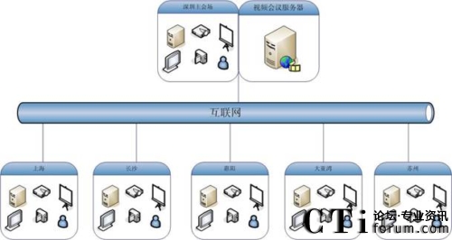 如圖,深圳南山地產(chǎn)視頻會(huì)議系統(tǒng)應(yīng)用規(guī)模為6個(gè)點(diǎn),包括深圳、上海、長(zhǎng)沙、惠陽(yáng)、大亞灣、蘇州。服務(wù)器部署在深圳用來(lái)保證香港和內(nèi)地的鏈接效果,服務(wù)器出口帶寬為3M共享,各分會(huì)場(chǎng)通過互聯(lián)網(wǎng)訪問服務(wù)器。在這個(gè)網(wǎng)絡(luò)平臺(tái)上,紅杉樹網(wǎng)絡(luò)會(huì)議所提供的高質(zhì)量音視頻圖像、方便易用的文檔、文件共享數(shù)據(jù)功能,使得南山地產(chǎn)能夠在這個(gè)平臺(tái)上進(jìn)行從桌面討論到會(huì)議室正式會(huì)議等各種規(guī)模的應(yīng)用。在這個(gè)平臺(tái)上,除了進(jìn)行日常例會(huì)、業(yè)務(wù)交流等常見的應(yīng)用之外,業(yè)務(wù)培訓(xùn)、異地招聘等也是經(jīng)常進(jìn)行的內(nèi)容。業(yè)務(wù)人員利用數(shù)據(jù)功能,節(jié)約了以前培訓(xùn)所花費(fèi)的大量精力和時(shí)間,為新項(xiàng)目迅速占領(lǐng)市場(chǎng)掌握了主動(dòng)。