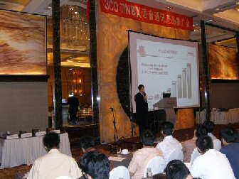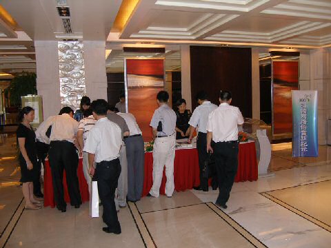 。。在茶歇期間,3Com的產品經理朱海翔先生、技術顧問黃海濤先生及NBX中國代理北京網音的銷售代表和與會的朋友們進行了熱烈的交流,與會的朋友們對NBX通訊產品均表示出極大的關注與濃厚的興趣,爭相與現場做演示NBX通訊系統進行零距離的"親密接觸",感受網絡電話帶來的魅力。大家所提出的問題也涵蓋了從話機功能到如何實現異地互聯等諸多實際功能,在獲得詳實答案后,對NBX通訊產品充滿了信心。此時此刻,香格里拉大酒店的宴會廳里,談論NBX的聲音充滿了每一個角落。