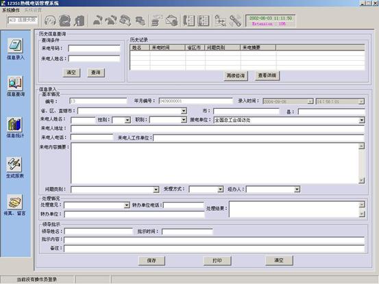 - 完善業(yè)務(wù)統(tǒng)計(jì)工作:針對健康熱線采集的信息,我們根據(jù)實(shí)際需要設(shè)計(jì)了統(tǒng)一格式的各項(xiàng)報(bào)表,同時(shí)將報(bào)表全部做電子化處理,方便業(yè)務(wù)數(shù)據(jù)的統(tǒng)計(jì)及管理,為各級領(lǐng)導(dǎo)決策提供可靠依據(jù)。