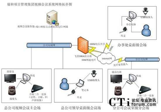 瑞和項(xiàng)目管理集團(tuán)網(wǎng)絡(luò)基礎(chǔ)建設(shè)以后,各個(gè)分支機(jī)構(gòu)通過(guò)ADSL接入到互聯(lián)網(wǎng),一般每個(gè)分支單位大約5人左右,負(fù)責(zé)1個(gè)省的業(yè)務(wù)。在現(xiàn)有的網(wǎng)絡(luò)基礎(chǔ)上構(gòu)建了XView迅流視頻系統(tǒng),來(lái)滿足各地之間的溝通需求,系統(tǒng)的大范圍使用大大的提高辦公效率,節(jié)省時(shí)間及會(huì)議成本。隨著各部門(mén)遠(yuǎn)程通信需求日益增多,充分發(fā)揮現(xiàn)有網(wǎng)絡(luò)優(yōu)勢(shì),根據(jù)瑞和項(xiàng)目管理集團(tuán)實(shí)際規(guī)模,對(duì)XView迅流視頻會(huì)議系統(tǒng)進(jìn)行擴(kuò)容到全國(guó)50個(gè)重點(diǎn)分支,改造以后XView迅流視頻會(huì)議系統(tǒng)作為公司主要通訊手段。實(shí)現(xiàn)各個(gè)分公司、辦事處充分應(yīng)用網(wǎng)絡(luò)視頻會(huì)議系統(tǒng)進(jìn)行音頻、視頻和數(shù)據(jù)的多方溝通,提高辦公效率。