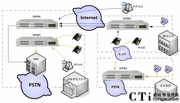 · “騰龍公司”需要組建內部電話網(wǎng),并且可以與“河南電力”進行VoIP通話?梢赃M行電話會議;