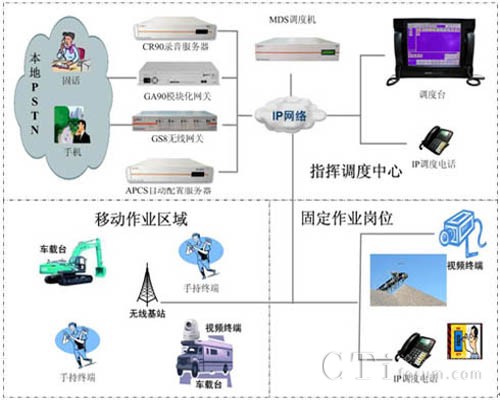 MDS系統(tǒng)可以應(yīng)用于各種作業(yè)現(xiàn)場(chǎng)的指揮調(diào)度, MDS系統(tǒng)不但支持系統(tǒng)基本的語音通信,調(diào)度中心可以通過視頻、數(shù)據(jù)、文本消息等綜合的多媒體方式與作業(yè)人員進(jìn)行通信交互,滿足各種復(fù)雜環(huán)境下的指揮調(diào)度需求。系統(tǒng)可以通過GS8無線網(wǎng)關(guān)、GA90