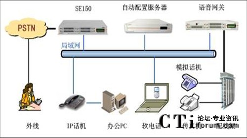 此方案適用于已經(jīng)部署了傳統(tǒng)PBX的企業(yè)。要求企業(yè)部署好數(shù)據(jù)網(wǎng)絡,如果采用模擬終端,則企業(yè)的各個辦公點需要先將網(wǎng)絡線路和電話線路部署到位,同時企業(yè)原有的PBX要預留與SE150對接的接口。