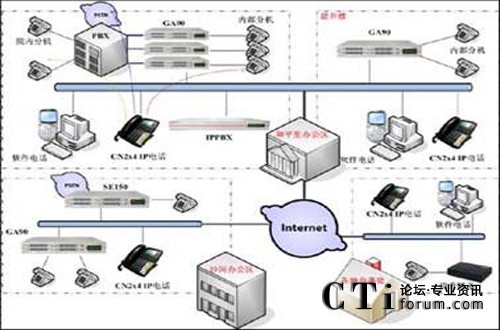 各地辦事處由于話務量比較少,所以只需要部署IP電話或小型網(wǎng)關,即可與總部進行免費的voip通話。