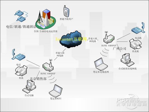 BiPAC 6404VGP其實(shí)就是一個(gè)VoIP語音網(wǎng)關(guān),VoIP就是一種把語音信號轉(zhuǎn)換成在網(wǎng)絡(luò)上傳輸?shù)臄?shù)字信號的技術(shù),它的應(yīng)用已經(jīng)非常成熟,我們經(jīng)常使用的QQ語音聊天功能也就是VoIP的一種表現(xiàn)形式。在所有大型跨國企業(yè)里我們幾乎都能看到VoIP技術(shù)的身影,這是因?yàn)殡娦胚\(yùn)營商的長途電話費(fèi)一般都不便宜,而我們企業(yè)的網(wǎng)絡(luò)使用費(fèi)一般又是包月的,通過無限包月的網(wǎng)絡(luò)打免費(fèi)的國際國內(nèi)長途電話不就是占電信的便宜嘛?