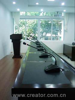 所以在本會議室配置了1臺標(biāo)準(zhǔn)的會議討論型控制主機臺CR-M4101,1臺座式的主席機CR-M4102B,9臺座式的會議代表機CR-M4104B,另外還有連接電纜等。主席機具優(yōu)先控制權(quán),設(shè)置主席位置,并且可以移動,代表機分別設(shè)置其余數(shù)個話筒點。采用手拉手方式,一條總線即可連接所有會議討論設(shè)備,布線簡單快捷。通過專業(yè)的音頻輸出口和音響擴聲系統(tǒng)結(jié)合,清晰、明亮的將發(fā)言人的聲音重放出來。
