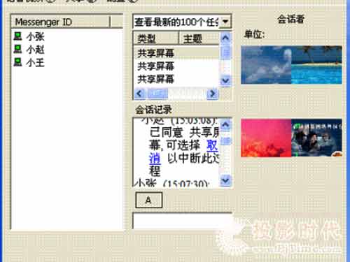 清揚即時通信與視頻會議軟件: 通過視頻會議,只要坐在計算機前,就可以與本地或者外地,固定或者移動,局域網(wǎng)或者廣域網(wǎng)的同事們進(jìn)行跨地域空間的卻又面對面的視頻會議。通過屏幕共享,坐電腦前能夠觀看遠(yuǎn)程的電腦操作,也可以操作電腦讓遠(yuǎn)程電腦觀看;通過共享播放,把VCD教育片播放給遠(yuǎn)程電腦觀看,也可以收看遠(yuǎn)程的播放;通過即時通信,把通知瞬間發(fā)布到所有同事,也可以把文件瞬間傳送給大家,還能夠接受來自同事的通知信息和文件;通過遠(yuǎn)程協(xié)助,可以求助同事遠(yuǎn)程操作自己的電腦等等,……,有了清揚即時通信與視頻會議,遠(yuǎn)在天涯的辦公室已近在眼前,移動辦公和異地辦公也不再有隔閡。