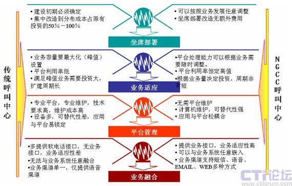 主要功能——   其他功能——   媒體服務(wù)器   NGCC平臺(tái)軟件結(jié)構(gòu) 與傳統(tǒng)呼叫中心技術(shù)基本相同    4. 不同類型的呼叫中心平臺(tái)比較