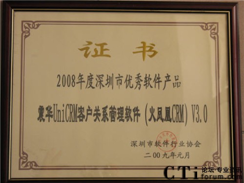 火鳳凰CRM軟件獲“2008年度深圳市優(yōu)秀軟件產品”稱號
