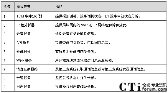 數(shù)字錄音系統(tǒng)通過模擬用戶線或者Lanside E1與交換機相連。當錄音對象摘機通話時,交換機將數(shù)字錄音系統(tǒng)和被錄音通話雙方建立會議,并通過CTI向數(shù)字錄音系統(tǒng)發(fā)出錄音啟動命令;當錄音對象結(jié)束通話時,交換機將數(shù)字錄音系統(tǒng)和被錄音通話雙方拆除會議,并通過CTI向數(shù)字錄音系統(tǒng)發(fā)出錄音結(jié)束命令。