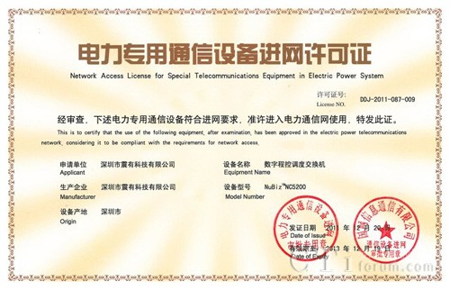 CTI論壇(ctiforum)12月22日消息(記者 張潔):日前從深圳市震有科技有限公司獲悉,震有科技數(shù)字程控調(diào)度交換機(jī)榮獲電力專(zhuān)用通信設(shè)備進(jìn)網(wǎng)許可證。