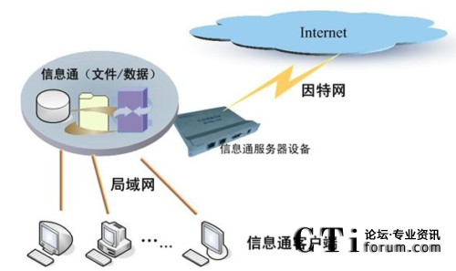 信息通系統(tǒng)的軟硬件部署,主要包括三個部分:信息通用戶工作平臺(客戶端)、信息通服務器(嵌入式設備)、數(shù)據(jù)/文件/管理服務器(其它應用)。其中,在實際應用中,信息通服務器與數(shù)據(jù)/文件服務器可以根據(jù)實際情況整合為一臺服務器。另外,整個系統(tǒng)通過應用網(wǎng)關——信息通服務器設備——與Internet連接,所以,信息通服務器與應用服務器為同一臺服務器。