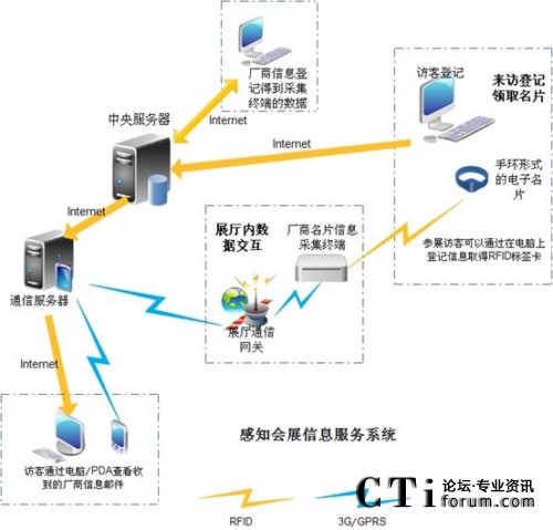 感知會展信息服務系統(tǒng)(Sensing Exhibition Information Service System-簡稱SEISS系統(tǒng))此系統(tǒng)是物聯(lián)網(wǎng)技術結(jié)合TTS技術應用于一體的新型會展系統(tǒng)。技術方案主要利用無線通信技術、射頻技術、電子技術、計算機技術、信息網(wǎng)絡技術、TTS技術和傳感技術等高科設備與軟件組成的系統(tǒng),以實現(xiàn)會展的電子名片化,并向參展商的目標客戶提供更好的服務。本系統(tǒng)的主要社會經(jīng)濟價值有: