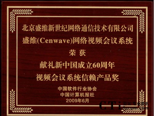 在剛剛結(jié)束的第十三屆中國國際軟件博覽會(以下簡稱軟博會)上,盛維(Cenwave)新世紀(jì)應(yīng)邀出席了2009中國軟件服務(wù)業(yè)發(fā)展高峰論壇暨開幕式,并且核心產(chǎn)品盛維(Cenwave)網(wǎng)絡(luò)視頻會議系統(tǒng)榮膺“獻禮新中國成立60周年•中國軟件行業(yè)視頻會議系統(tǒng)信賴產(chǎn)品獎”。這一經(jīng)過企業(yè)申報、候選投票、專家評審、發(fā)布頒獎等嚴(yán)格流程評選出來的獎項,傳達了用戶的真實心聲,反映了盛維(Cenwave)網(wǎng)絡(luò)視頻會議系統(tǒng)已經(jīng)被越來越多的客戶所信任。