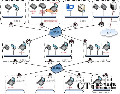 通過可視電話融合通信平臺和可視電話應(yīng)用服務(wù)器,實現(xiàn)與現(xiàn)有電話系統(tǒng)的融合?梢灾С諴STN模擬線路融合,E1數(shù)字線路融合和VOIP的SIP協(xié)議融合。