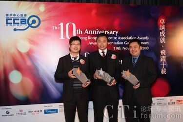 CTI論壇(ctiforum)11月20日消息(記者 張塵):11月19日晚,大中華區(qū)領(lǐng)先信息通訊技術(shù)服務(wù)商第一線安萊于2009年香港客戶中心大獎(jiǎng)評(píng)選晚會(huì)中,再次囊括三項(xiàng)大獎(jiǎng):最佳外包客戶中心 (呼入)、最佳華南客戶中心 (100席以上) 及最佳離岸客戶中心。加上上個(gè)月由中國呼叫中心協(xié)會(huì)CNCCA授予的“2009中國(亞太)最佳外包呼叫中心”及全球IP通訊聯(lián)盟所頒發(fā)的“最佳外包呼叫中心供應(yīng)商(國內(nèi))”獎(jiǎng),第一線安萊在這個(gè)金秋時(shí)節(jié)可謂收獲頗豐。第一線安萊IP呼叫中心再次獲得業(yè)界的認(rèn)同,這也體現(xiàn)了第一線安萊在該項(xiàng)產(chǎn)品及服務(wù)方面擁有領(lǐng)先的優(yōu)勢(shì),通過持續(xù)進(jìn)步,為客戶創(chuàng)造有利的營運(yùn)模式,也有助于奠定企業(yè)服務(wù)的標(biāo)準(zhǔn),再度奪獎(jiǎng)乃實(shí)至名歸。