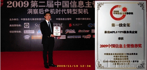 CTI論壇(ctiforum)11月25日消息(記者 張塵):2009年11月19日,2009年中國信息主管年會(huì)在北京世紀(jì)金源大飯店盛大召開,會(huì)議共吸引了各行業(yè)千名CIO線上與線下的參與。作為中國CIO云集的高峰會(huì)議,第一線安萊全程參與了本次大會(huì),從產(chǎn)品方案與展示等方面向業(yè)界展示了第一線安萊10年多來在MPLS VPN服務(wù)領(lǐng)域的最佳實(shí)踐經(jīng)驗(yàn)與卓越的市場(chǎng)領(lǐng)導(dǎo)地位,贏得了各與會(huì)嘉賓及CIO們的普遍認(rèn)同和稱贊。