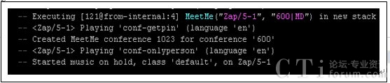 注意:這里輸入的密碼和房間號都要和extensions.conf文件里的撥號方案定的一致,否則不能進(jìn)入會議。