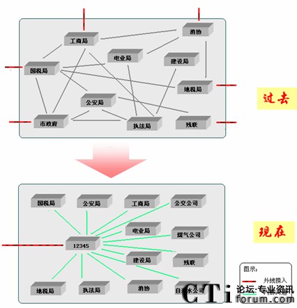 “12345”政府服務(wù)熱線以呼叫中心結(jié)合門戶網(wǎng)站和業(yè)務(wù)流程整合,創(chuàng)新了電子政務(wù)應(yīng)用模式,將傳統(tǒng)的電話服務(wù)和網(wǎng)站信息管理及協(xié)同辦公工作流程技術(shù)等結(jié)合,建立了統(tǒng)一的面向公眾服務(wù)的綜合性服務(wù)平”,實現(xiàn)“一站式”服務(wù),完全符合電子政務(wù)的信息化框架。