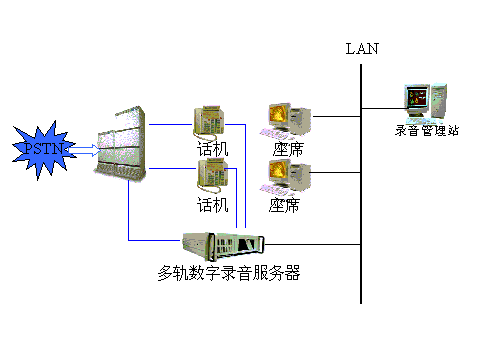 一、 錄音系統(tǒng)概念: 在通訊領域中,電話網(wǎng)范圍已經(jīng)普及到中國的各個角落成為主要的通信手段,通過電話人們可以相互溝通,傳達信息,通話過程中錄制有效的信息越來越得到各企事業(yè)的重視。在商務服務領域,各行業(yè)建設了客戶服務中心既"呼叫中心"代替?zhèn)鹘y(tǒng)的柜臺業(yè)務,通過錄音記錄業(yè)務代表的服務質(zhì)量對其進行監(jiān)督和考核以便提高企業(yè)的名譽;在政府安全部門對一些重點監(jiān)控對象的往來通信進行錄音和實時監(jiān)聽,以及對某些重要指令錄音。