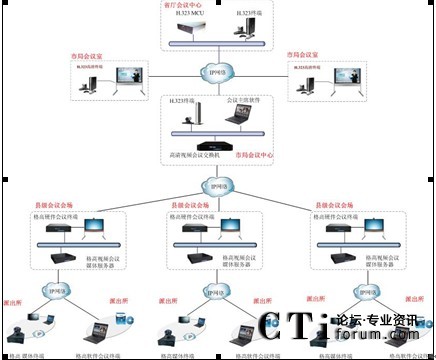 公安視頻會議系統(tǒng)建設(shè)主要依托現(xiàn)有的寬帶IP網(wǎng),建設(shè)從市局到各縣區(qū)分局及各鄉(xiāng)鎮(zhèn)派出所之間的交互式視頻會議系統(tǒng),最終建成的系統(tǒng)要實(shí)現(xiàn)全省公安系統(tǒng)每個(gè)點(diǎn)都能互通。